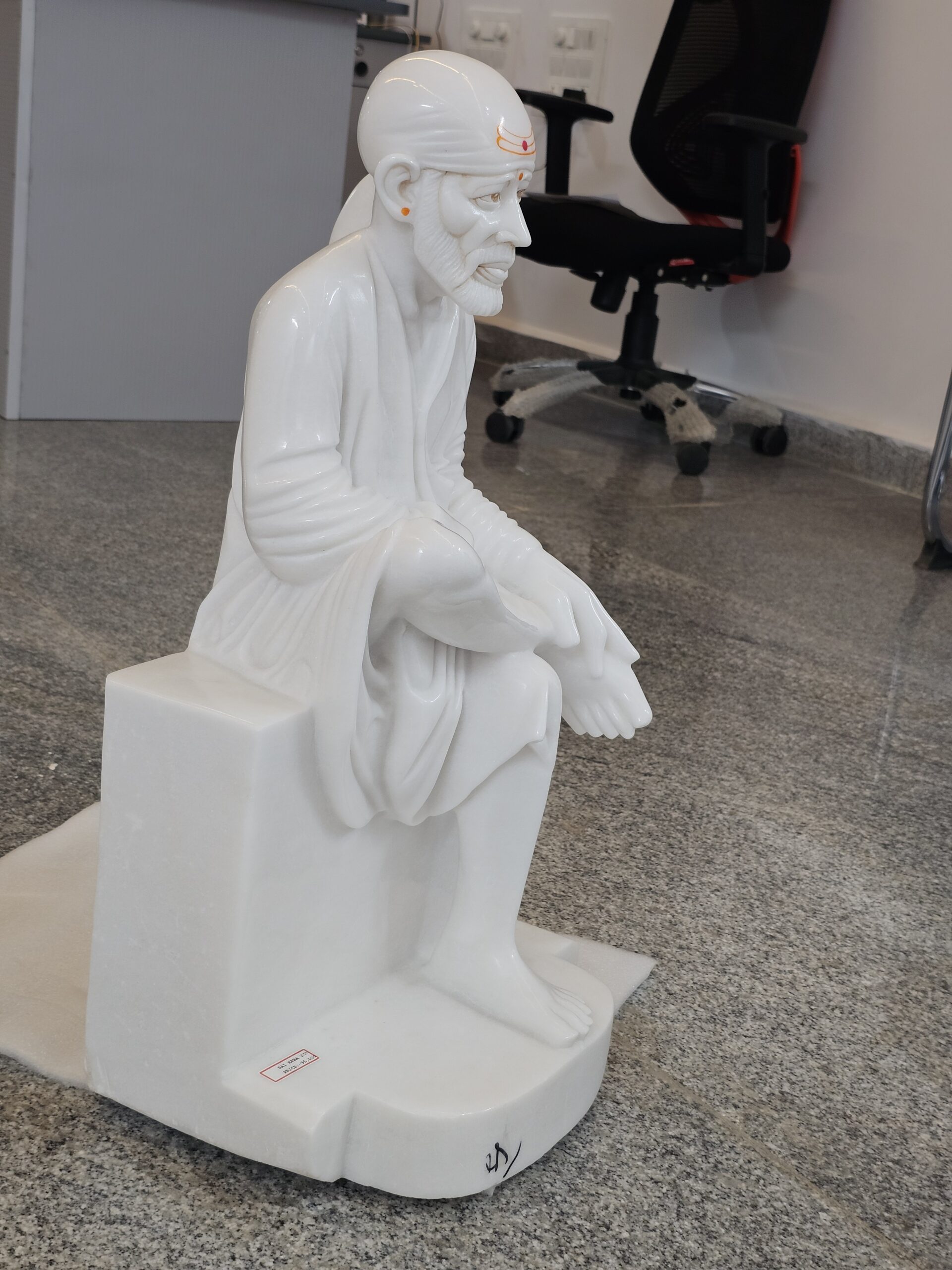 Premium White Marble Sai Baba Murti – Handcrafted Spiritual Idol